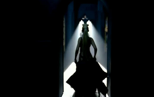 A mitad de la canción, Christina está vestida de negro, con accesorios masculinos y de pie entre dos pilares pseudo-masónicos.